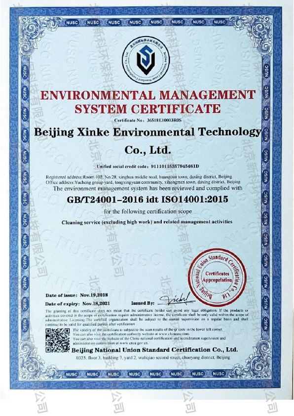 北京新科環保科技有限公司隸屬于玉成集團,是一家專業提供垃圾綜合治理全產業鏈服務的環保企業。長期致力于環保設備設計、生產及環保技術研發,自主研發的垃圾處理設備廣泛應用于北京市各垃圾處理站區。公司順應當前環境的發展,組建了一支強大的技術研發團隊,匯集了百余名環保領域的專家學者,并且與多家高校進行深入的技術交流與合作,研發集成了“國內領先、國際一流”的多種技術和產品,擁有多項廢棄物處置的國家專利。公司采用信息化管理技術,實現對各地項目(跨區域)集中、在線綜合管理,實現服務過程的標準化、規范化和現代化管理。